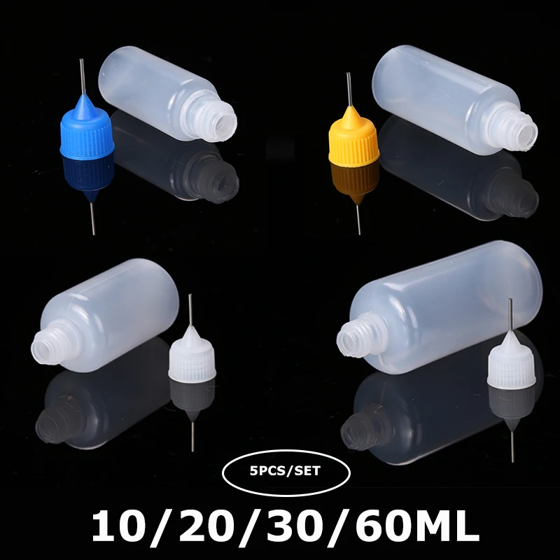 5pcs/set Needle Tip Bottles Glue Empty Applicator Bottles Liquid Dropper Cap for DIY Paint Craft Paper Art 10/20/30/60ML