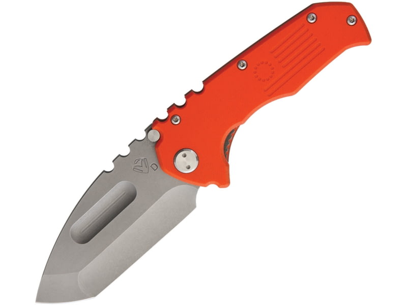 Medford Praetorian Linerlock Folding Knife 4in Tumbled Finish D2 Tool Steel Tanto Blade Orange G10 Handle Thumb Stud Pocket Clip MK30DTT-11GG