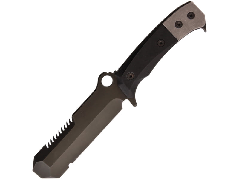 Medford USMC EOD-1 Knife 5.5" black PVD coated sawback 3V steel blunt tip b Black G10 and titanium handle MK0743PQ-08KB