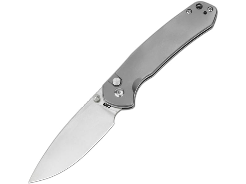 CJRB Pyrite Button Lock Titanium 3.13 in Folding Knife Satin finish titanium J1925TI
