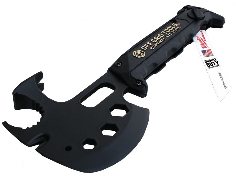 Off Grid Tools Survival Axe Elite. With a heat-treated hatchet head and many great features such as a recessed nail puller pry bar box cutter can opener hex sockets and more these Axes & Saws by Off Grid Tools are lightweight and small enough to fit...  Read more