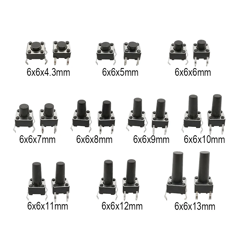 50Pcs 6x6mm Tactile Tact Mini Push Button Switch PCB Panel Momentary DIP 4 Pin Self-Reset Switch 6*6*4.3/5/6/7/8/9/10/11/12/13MM