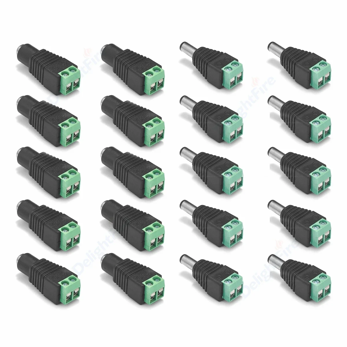 12V DC Connector Barrel Jack Adapter Female Male 5.5 2.1mm DC Power Connectors For LED Strip Light CCTV Camera Power Adapter