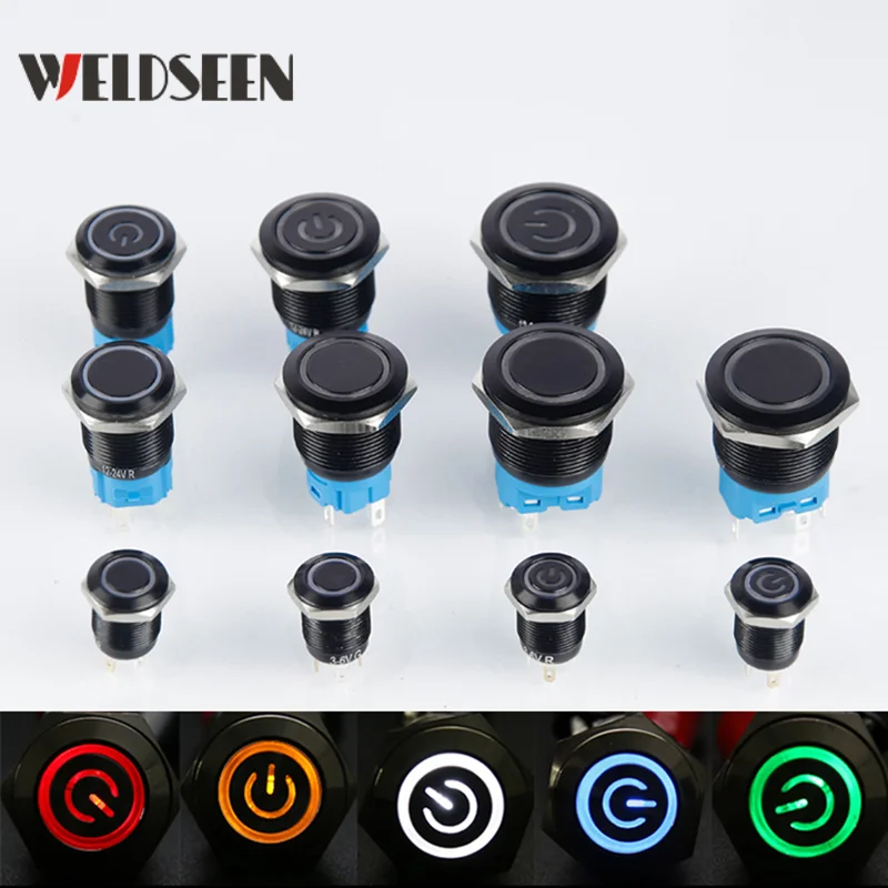 12/16/19/22mm Push Button Switch Oxidized Black Momentary Latching Fixed On Off Power Switch LED Light 3V 6V 12V 24V 220V  Read more