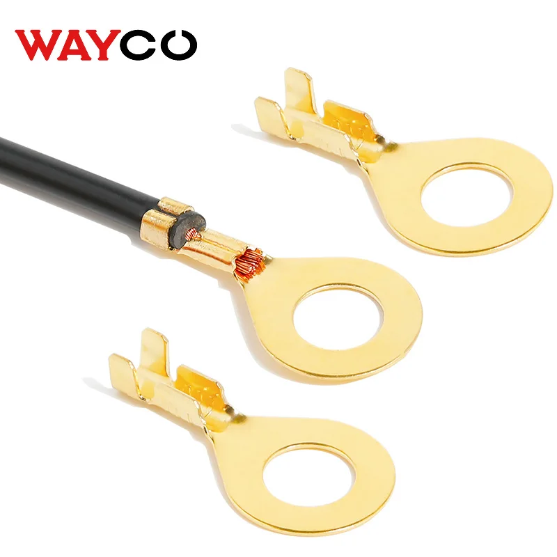 100PCS Ring Crimp Terminal Lugs Electrical Wire Cable Connectors Gold Brass M3 M4 M5 M6 M8 M10 O-Shoe Type Plug for Splice Screw