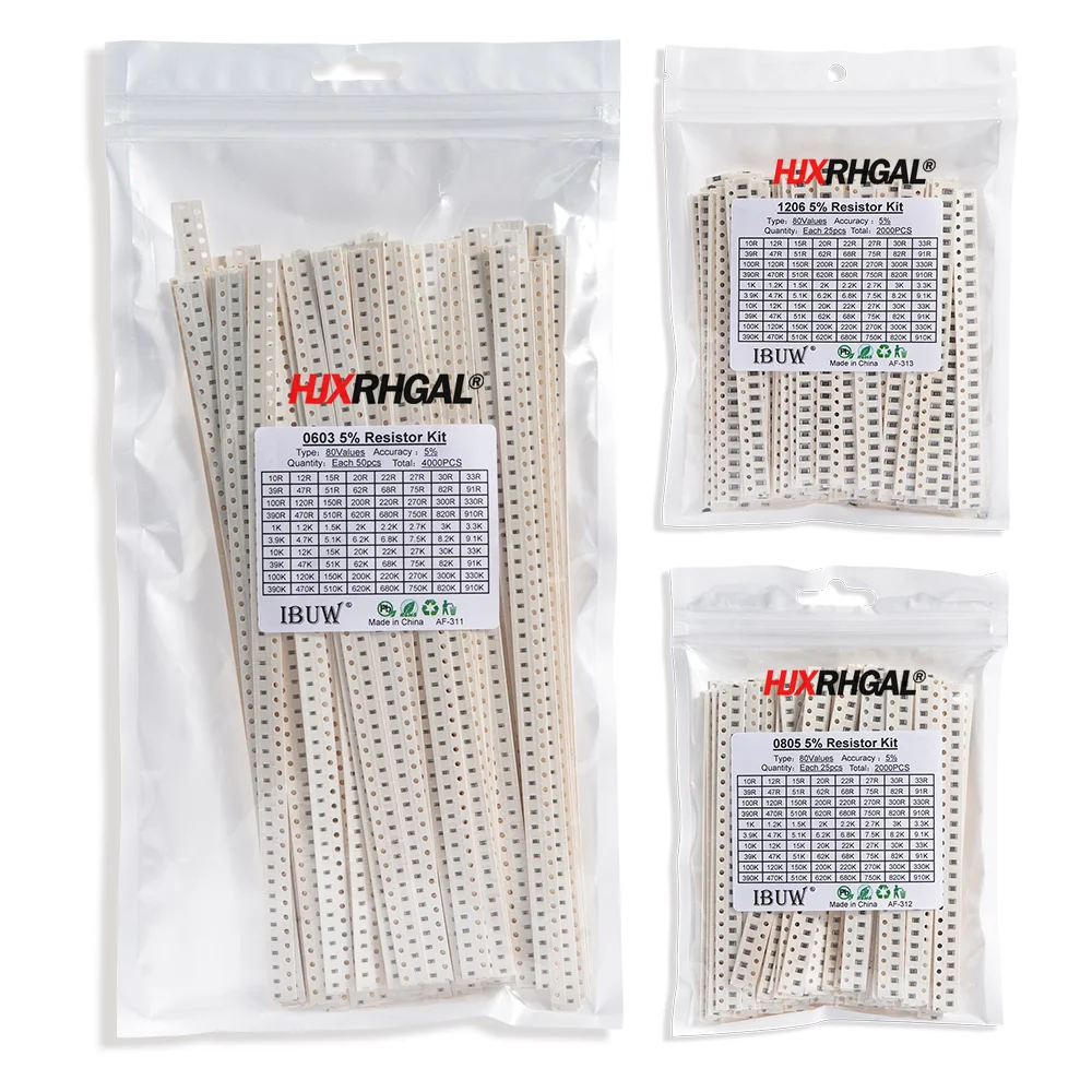 0402 0805 0603 1206 2512 1210 SMD Resistor Kit Assorted Kit Sample Kit 10/20/33/36/60/80 Values 1K 10K 20K 100K 100 200 220 ohm
