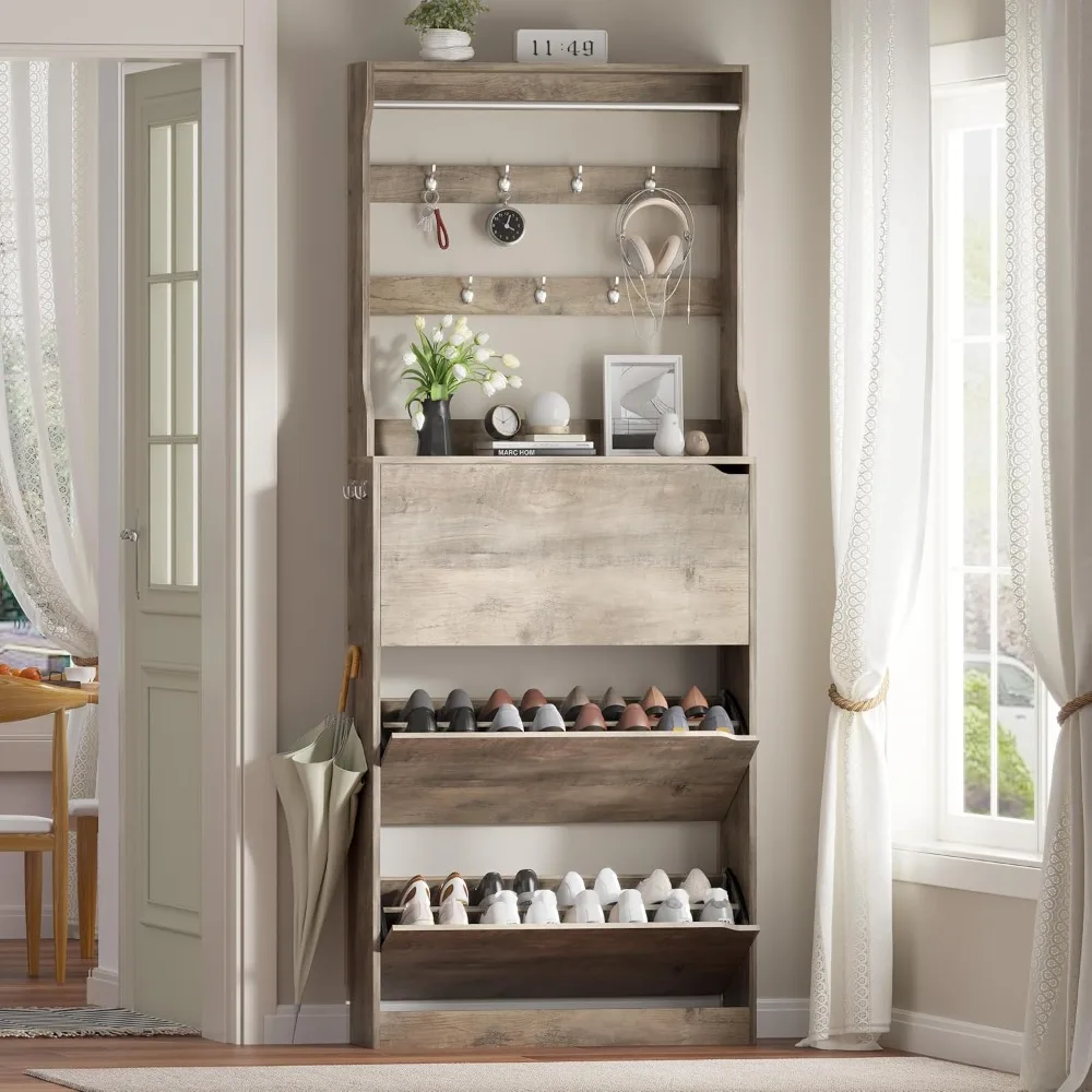 YipinShoe Storage Cabinet, Wood Shoe Organizer for Entryway with 3 Flip Drawers, Freestanding Shoe Rack with Adjustable Shelf, N  Read more