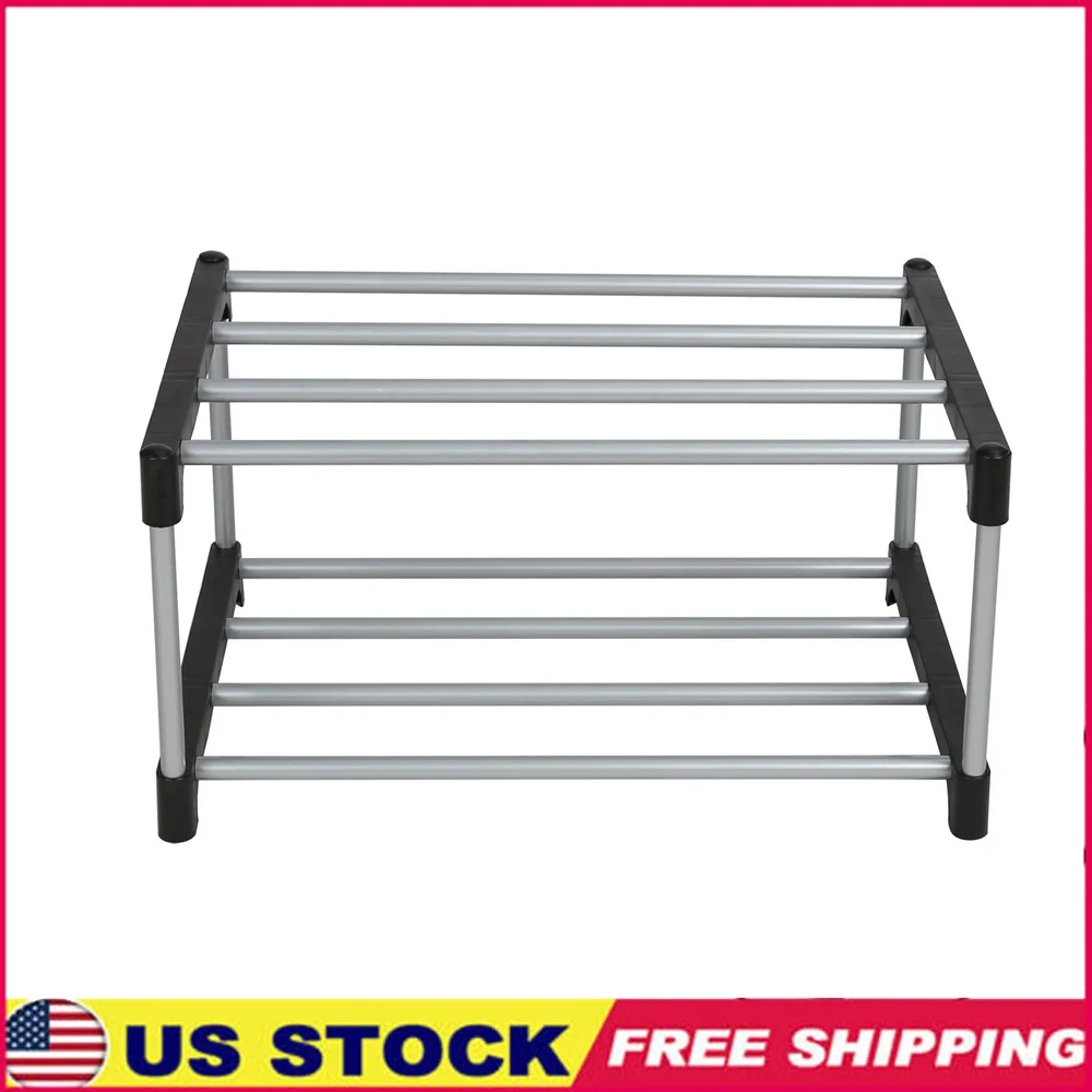 2 Tier Shoe Rack 4 Pairs of Shoes Stackable Modular Design Durable Iron and Plastic Connectors Easy Assembly Space Saving