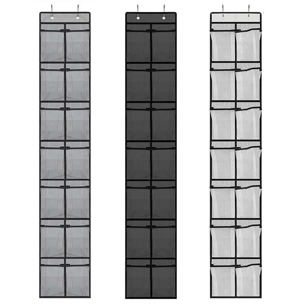 12 Pockets Over the Door Shoe Organizer Large Mesh Pockets With 2 Hooks Transparent Fabric Shoe Rack Storage Bag For Bedroom