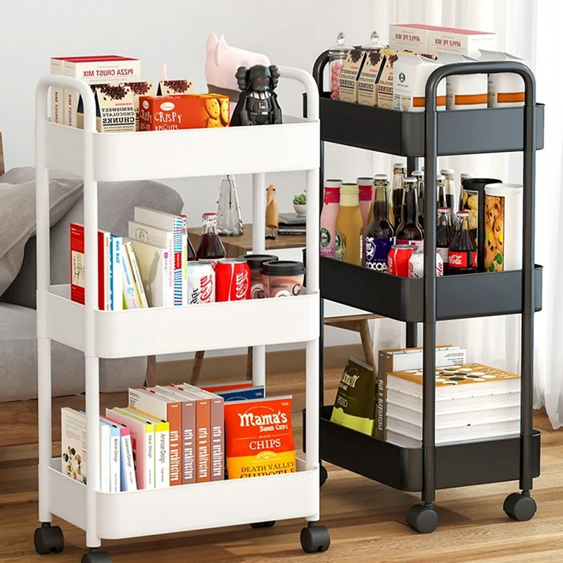 2/3/4/5 Tier Plastic Rolling Trolley Clothes Storage Locker with Wheels Small Laundry Storage Trolley for Dormitory Organisation