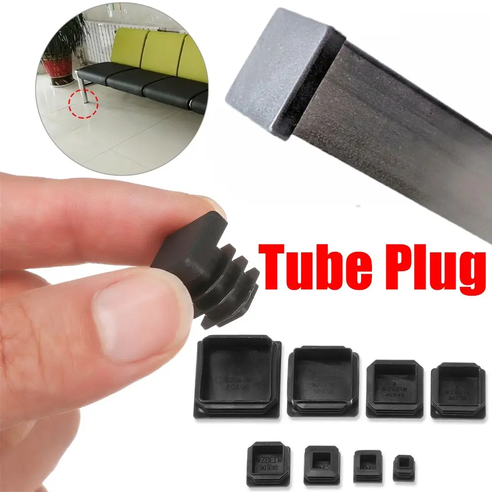 10pc Black Plastic Steel Square Pipe Plug Furniture Accessory Leg Plug Anti Slip Feet Protector Pad Plastic Square Tube Cap Plug