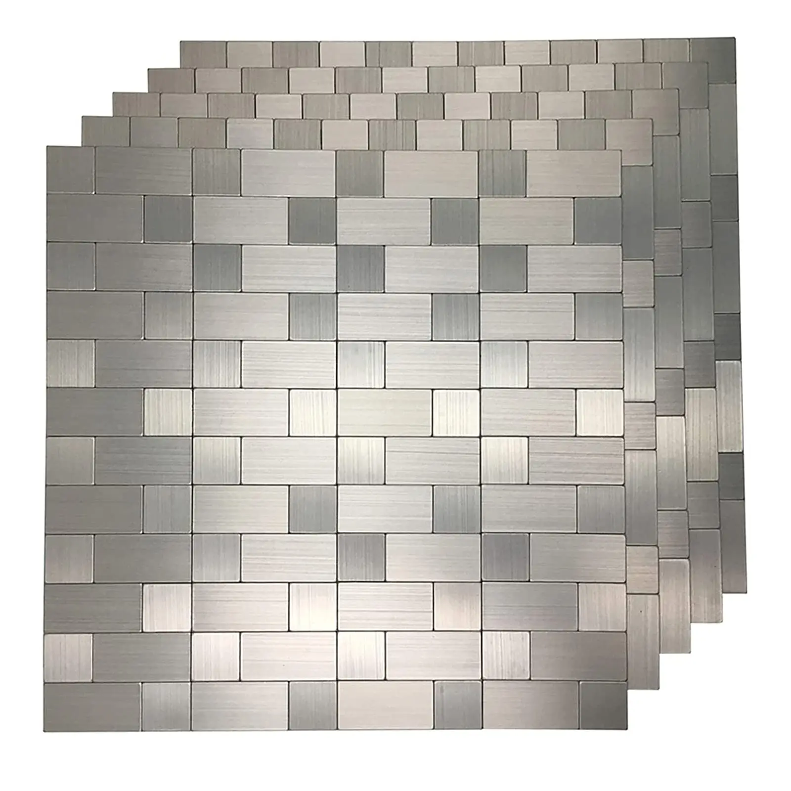 Art3d 1 PCS Peel and Stick Backsplash Tiles Self adhesive Stainless Steel Kitchen Silver Brushed Metallic Mosaic 30x30cm