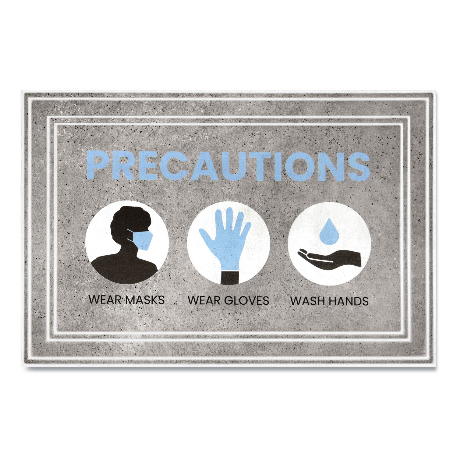Apache Mills® 3984528812X3 Message Floor Mats, 24 x 36, Gray/Blue, "Precautions Wear Masks Wear Gloves Wash Hands" APH3984528812X3