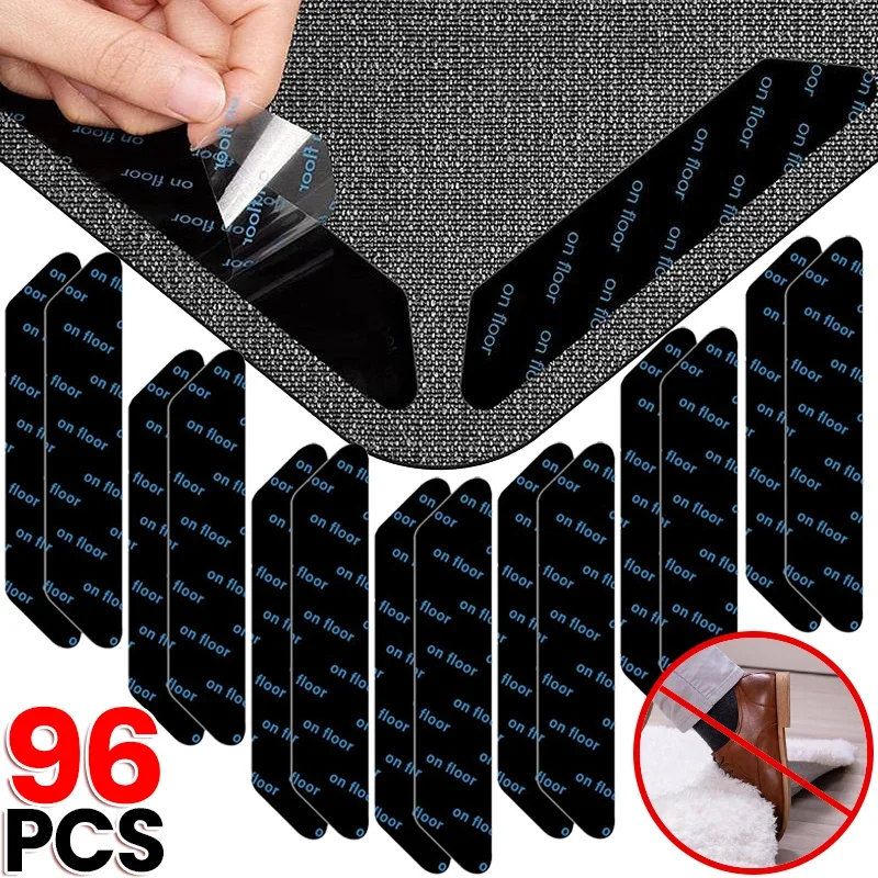 96/8pcs Carpet Non-slip Sticker Reusable Washable Anti Curling Carpet Patch Fixed Stickers Floor Rug Mat Tape Gripper Corner Pad