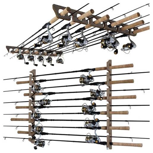 Rush Creek Creations 2-Piece Wall/Ceiling Rod Rack - Barn Wood, 11 Rod Capacity - Barn Wood
