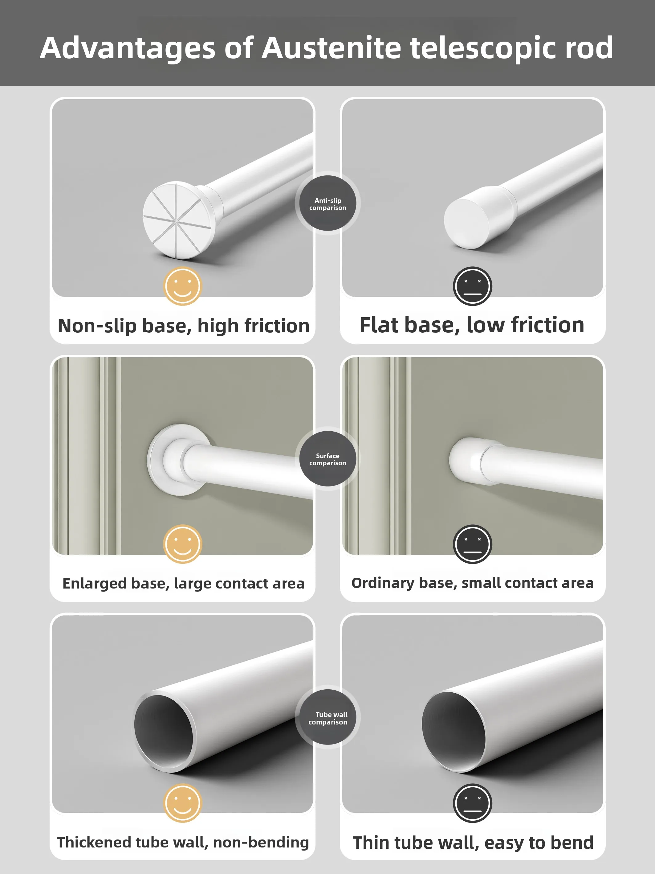 30-110cm Adjustable Metal Curtain Rod Spring Loaded Extendable Telescopic Poles for Bathroom Bar Shower No Drilling Hanging Rods