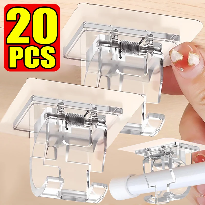 Self Adhesive Curtain Rod Holder Nail-Free Adjustable Clamp Hooks Kitchen Bathroom No Drilling Wall Hanging Rack Hook Bracket