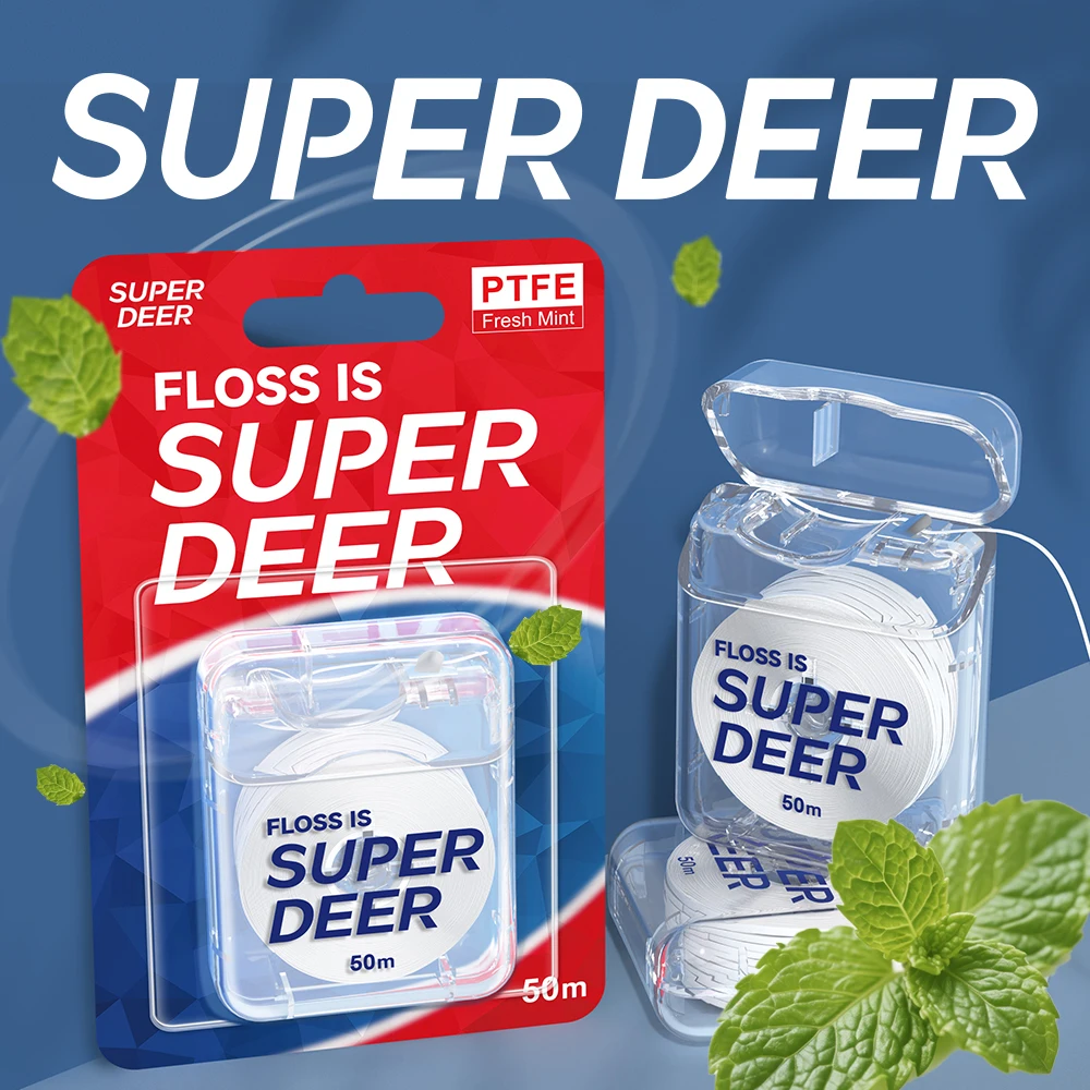 Super Deer Flat Dental Floss Mint PTFE Floss Gentle on Gums Expands & Stretches Plaque Remover for Teeth 55 yd