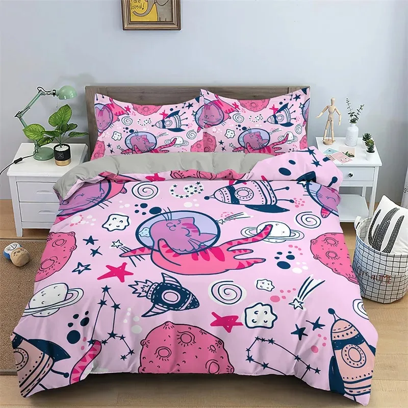 Cute Cat Bedding Set 2-3Pcs Bedroom Quilt Cover Set Single Double Size Polyester Duvet Cover Pillowcase for Adult Boy Girl
