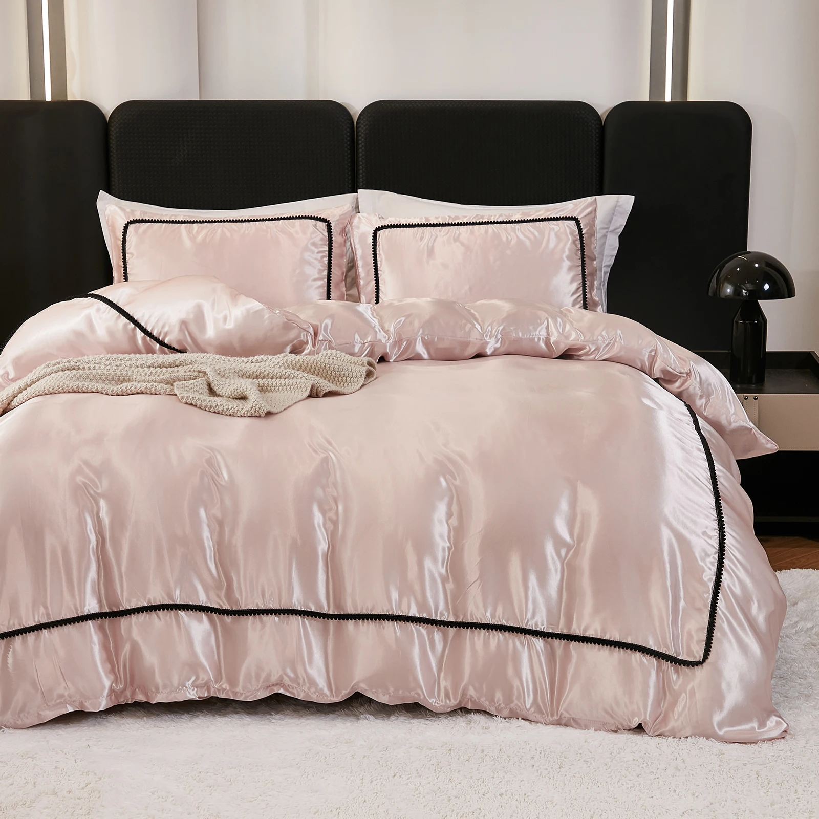 3PCS Satin Duvet Cover Set Silk White Black And Pink Bedding Comforter Cover Silky Luxury Silky Bed set Soft for All season