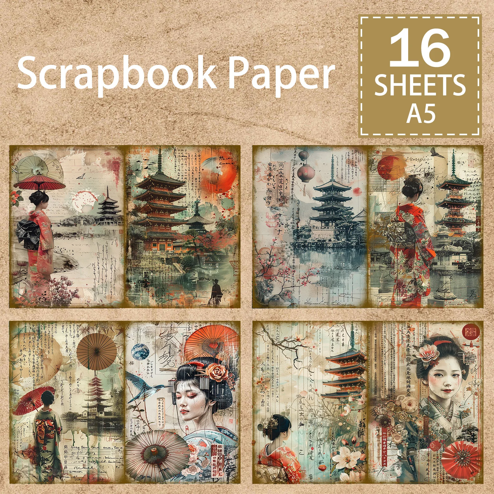 16 Sheets A5 Size Japanese Ancient Style Lotus Pavilion Women's Building Background Vintage Grunge Journal Planning Scrapbooking  Read more