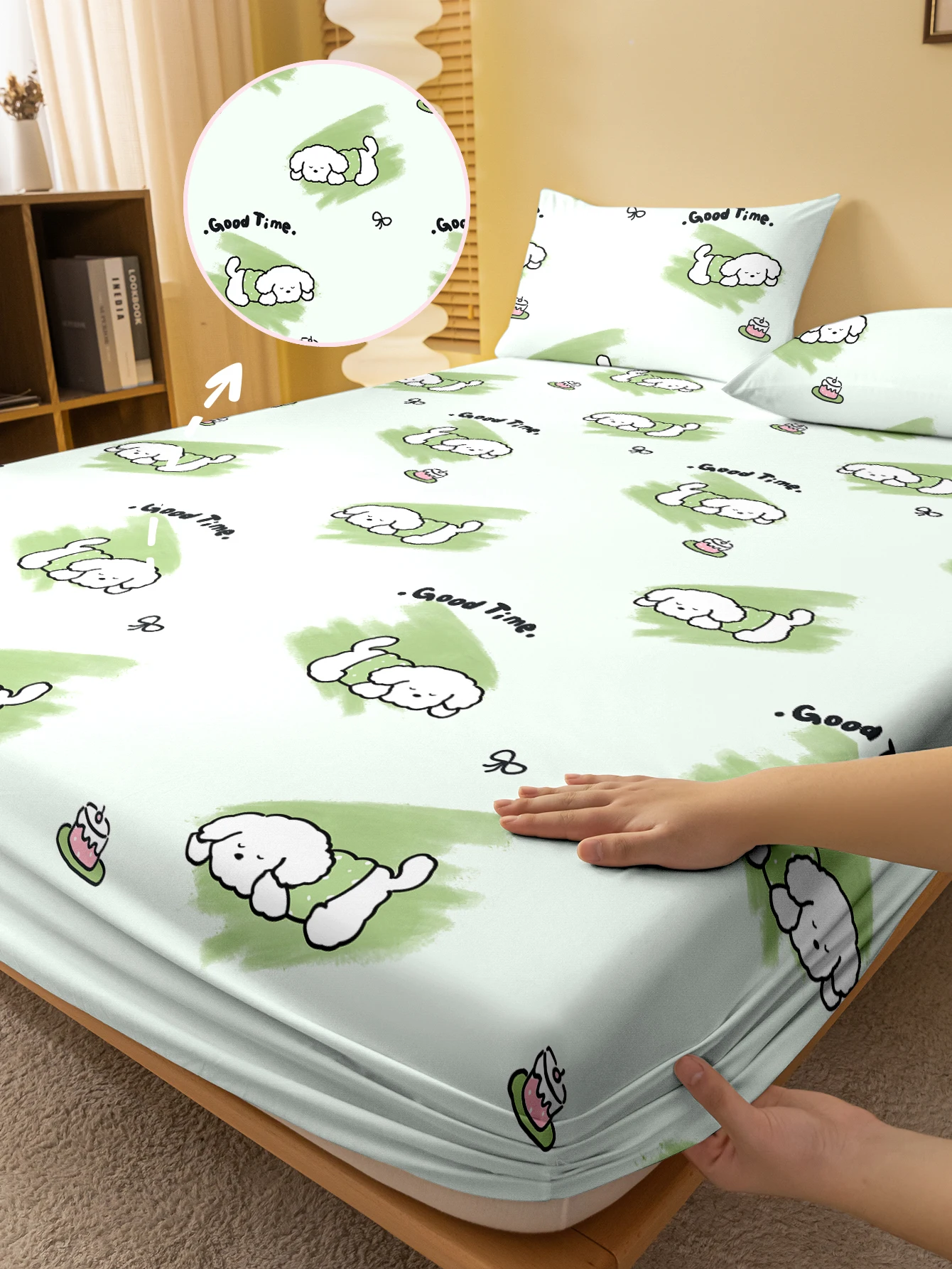 1 Cartoon Cute animal dog printed matte Fitted Sheet, bedroom printed bed cover, bedding (excluding pillowcases)