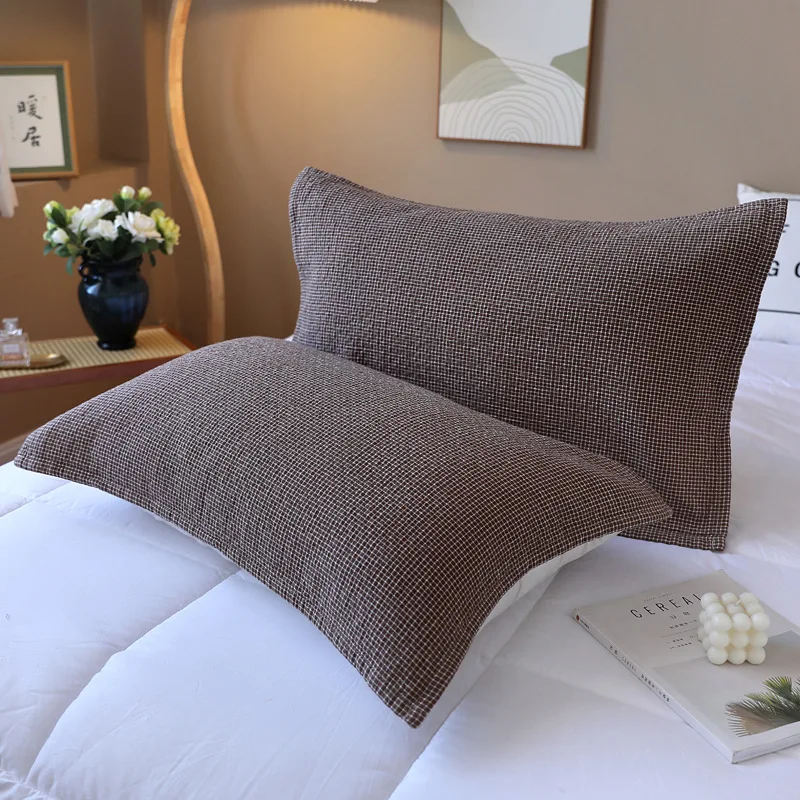 Japanese Style Pure Cotton Gauze Pillow Towel Pillowcase Plaid Pattern Single Pillow Cover Towel for Adult Children 50*75cm