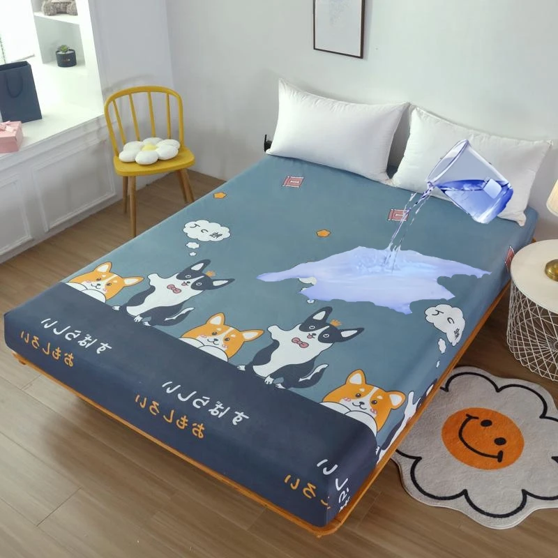 Kuup-Polyester 360° waterproof Cartoon Fitted Sheet Only(no pillowcase) Elastic Band Around Mattress Cover King Size Bed Cover