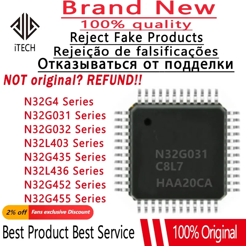 Series of N32G4 N32G030 N32G031 N32G032 N32L403 N32G435 N32L436 N32G452 N32G455 ARM Cortex-M4 32-bit Microcontroller MCU Chip