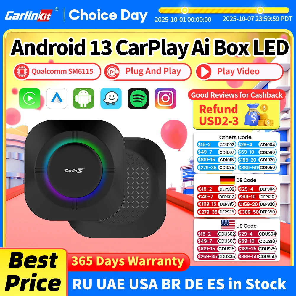 2025 NEW CarPlay AI Box LED Android 13 SM6115 8-Core CPU 5G WiFi BT GPS For Netflix Wireless Android Auto CarPlay Smart TV Box  Read more