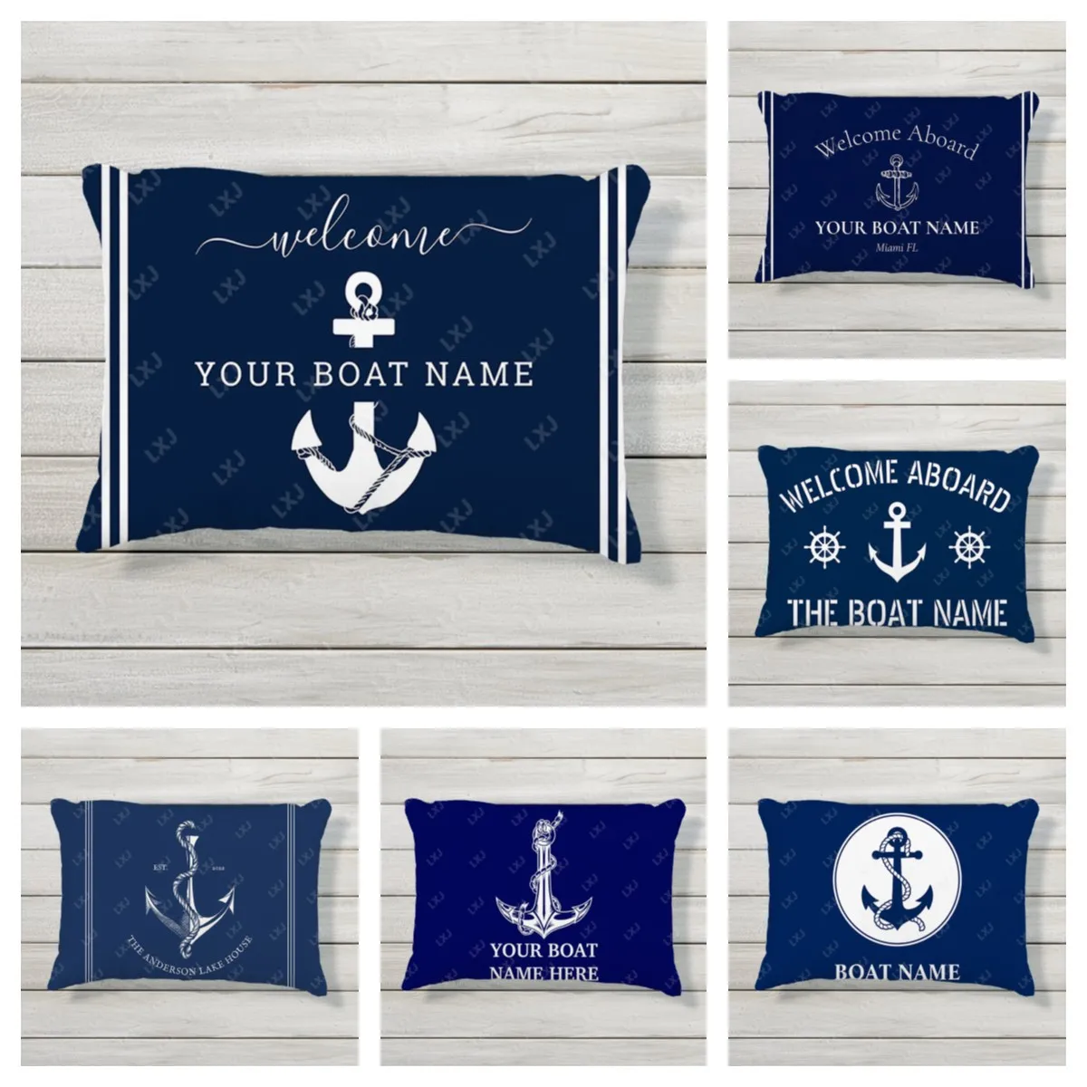 Personalized Nautical Pillow Cover Custom Boat Name Home Decor Cushion Cover for Sofa Bedroom Living Room Decorative Pillowcase