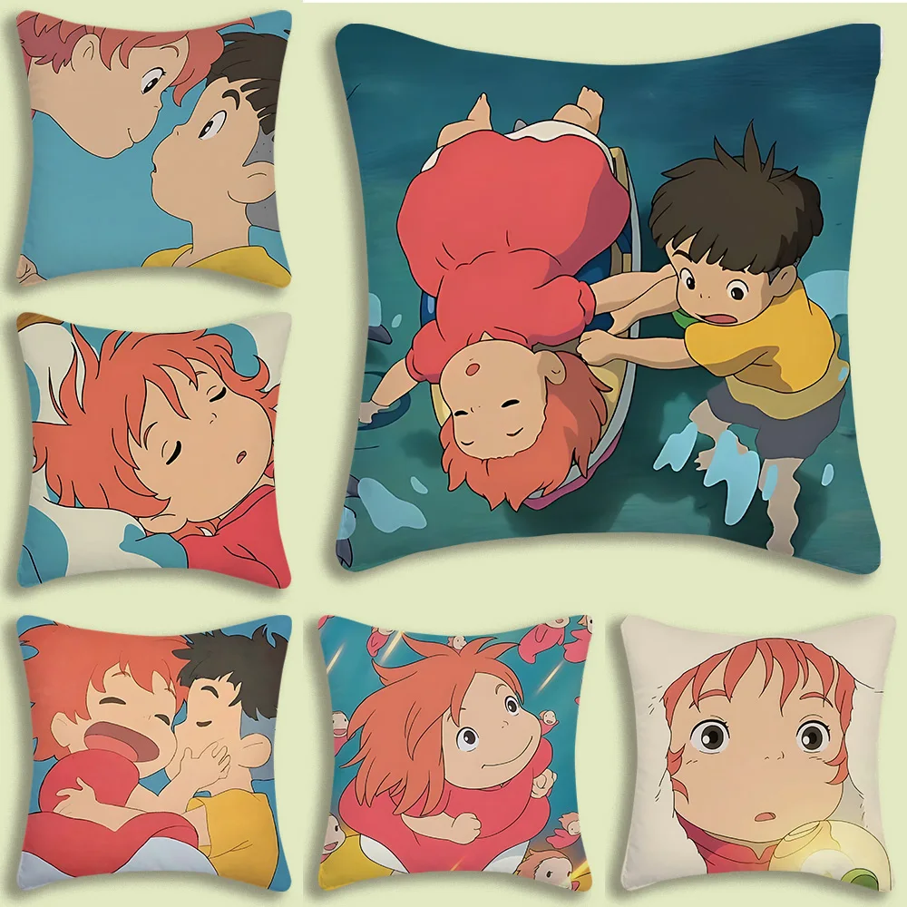 Cute Cartoon Ponyo Pillow Covers Cartoon Sofa Decorative Home Double-sided Printing Short Plush Cute Cushion Cover
