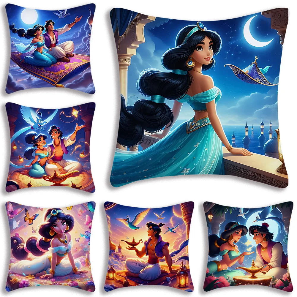 Cartoon Kawaii Aladdin Jasmine Pillow Covers Cartoon Sofa Decorative Home Double-sided Printing Short Plush Cute Cushion Cover
