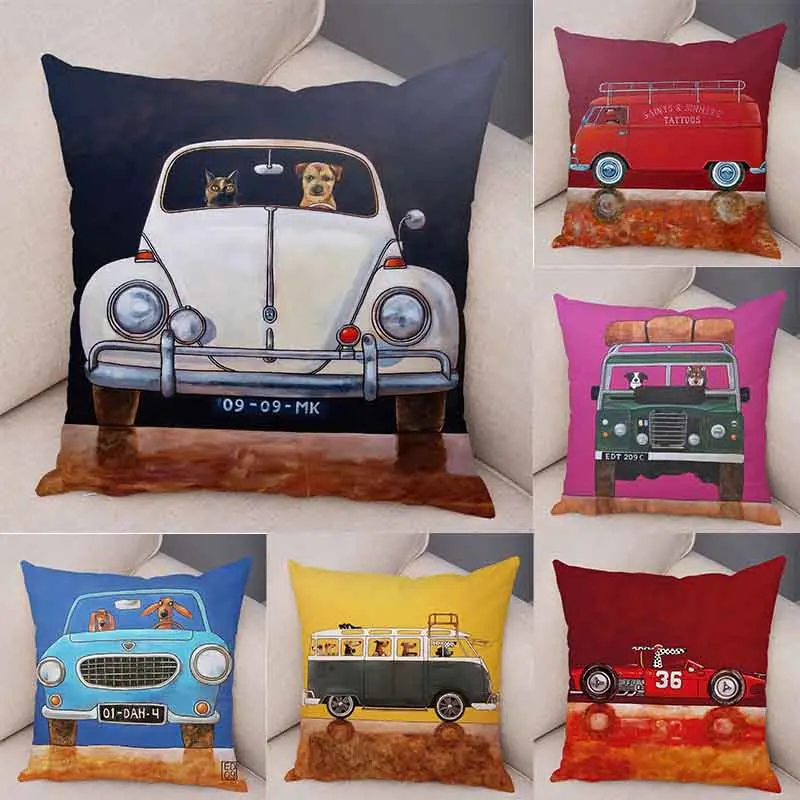 Luxury Home Decor Pillowcase Living Room Sofa Cushion Cover Colorful Cartoon Bus Pattern Decorative Cushion Cover
