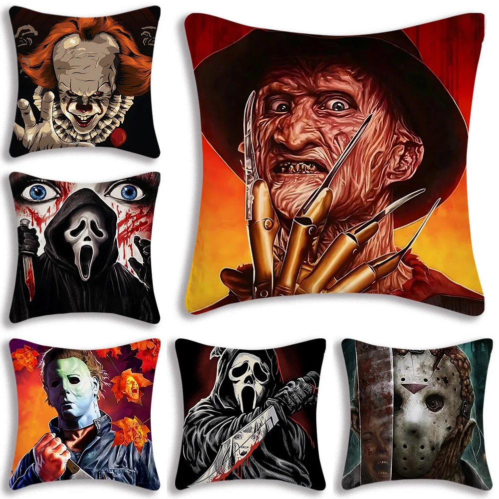 Halloween horror killer Pillow Covers Cartoon Sofa Decorative Home Double-sided Printing Short Plush Cute Cushion Cover