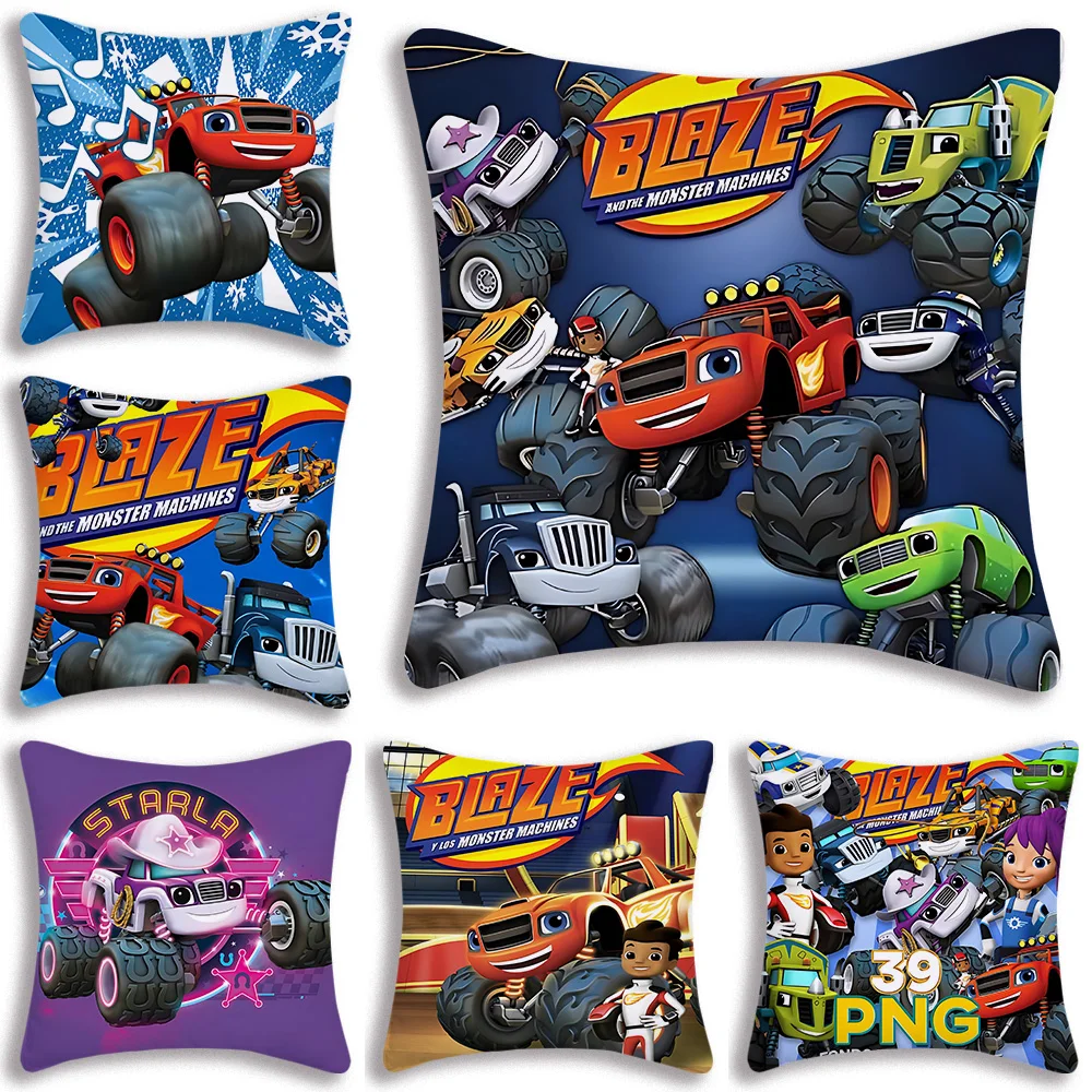 Cartoon Blaze and the Monster Machines Pillow Covers Sofa Decorative Home Double-sided Printing Short Plush Cute Cushion Cover