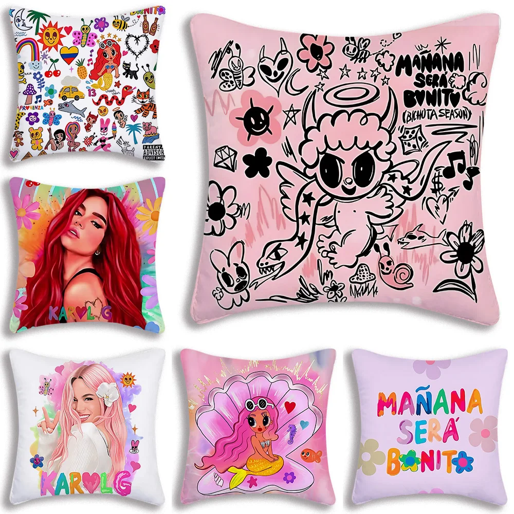 Manana Sera Bonito Karol G Pillow Covers Cartoon Sofa Decorative Home Double-sided Printing Short Plush Cute Cushion Cover