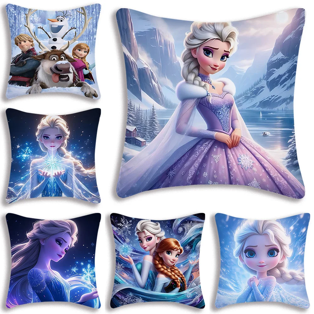Cartoon Frozen Princess Elsa Pillow Covers Cartoon Sofa Decorative Home Double-sided Printing Short Plush Cute Cushion Cover