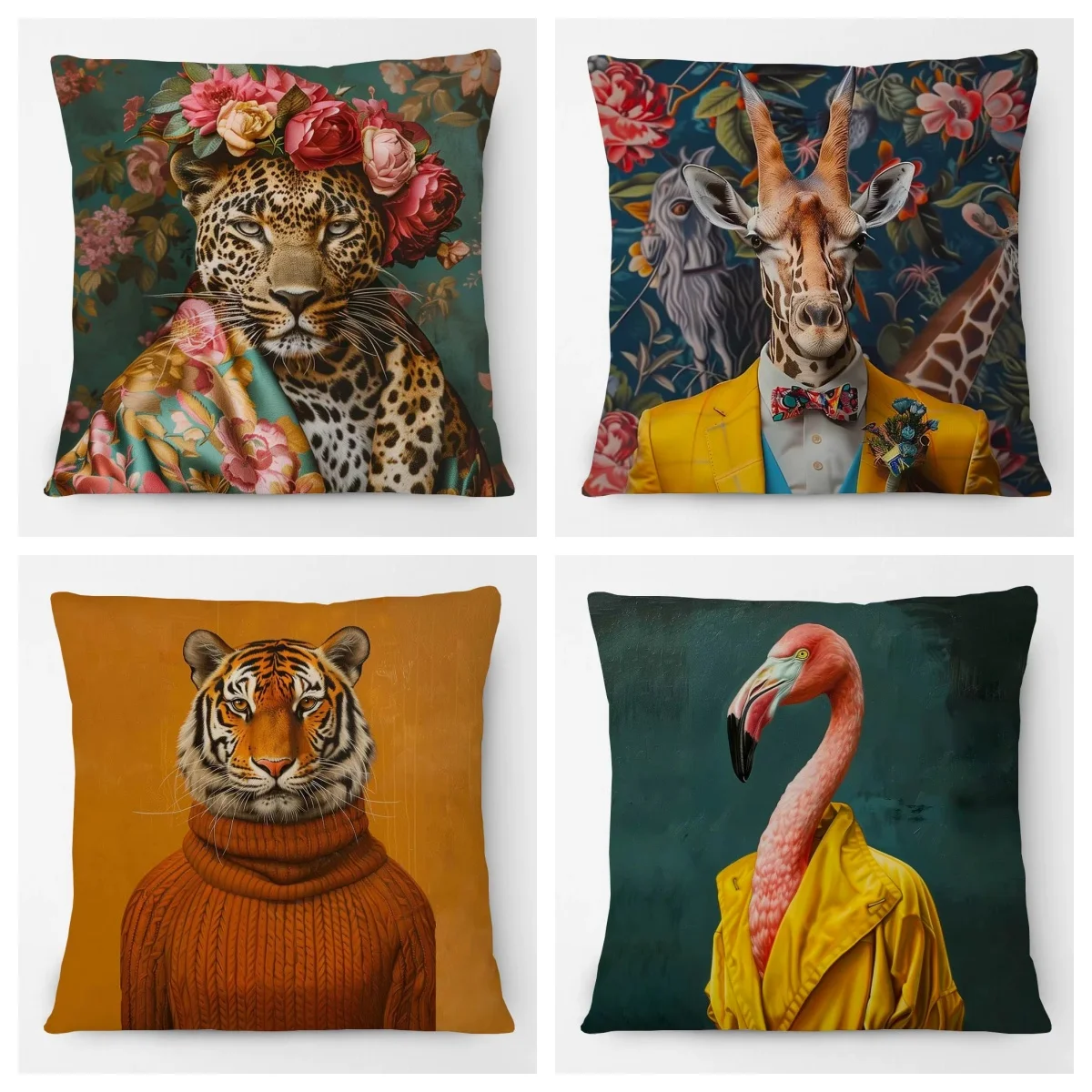 Elegant Giraffe Flamingo Female Leopard Animals Portrait Pillow Cover Room Decor Cushion Cover Sofa Pillowcases Decoration