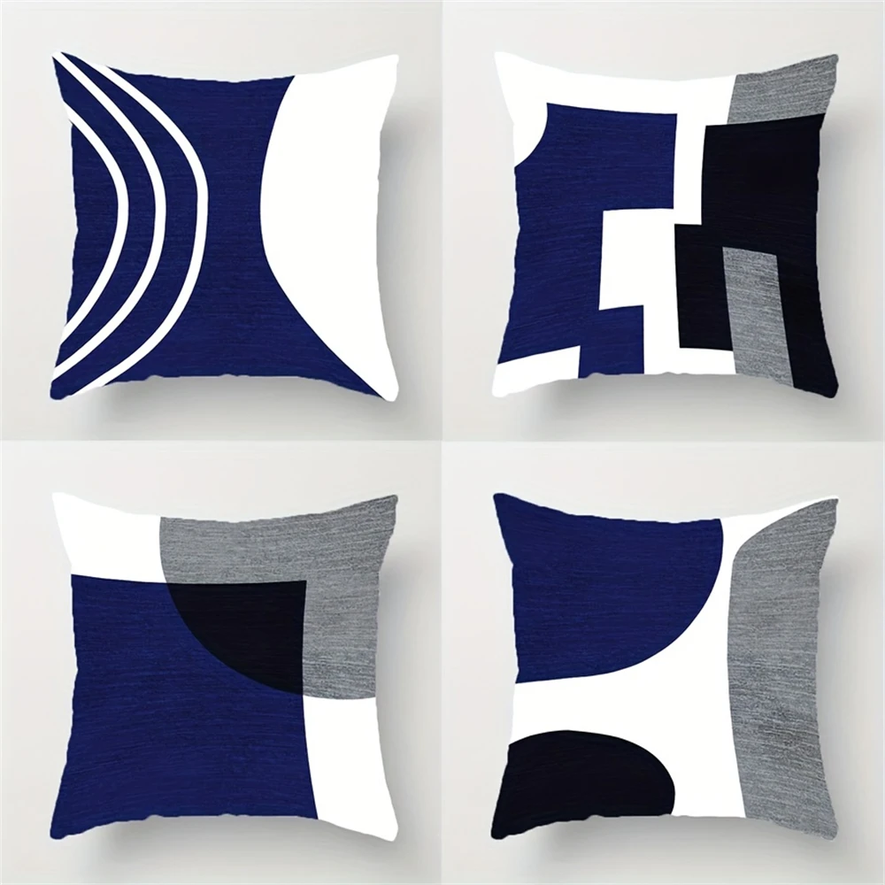 1pcs Blue Pillow Sofa Navy Blue Black Grey White Silver Bohemian Style Decorative Pillowcase Abstract Geometry Modern Pillowcase