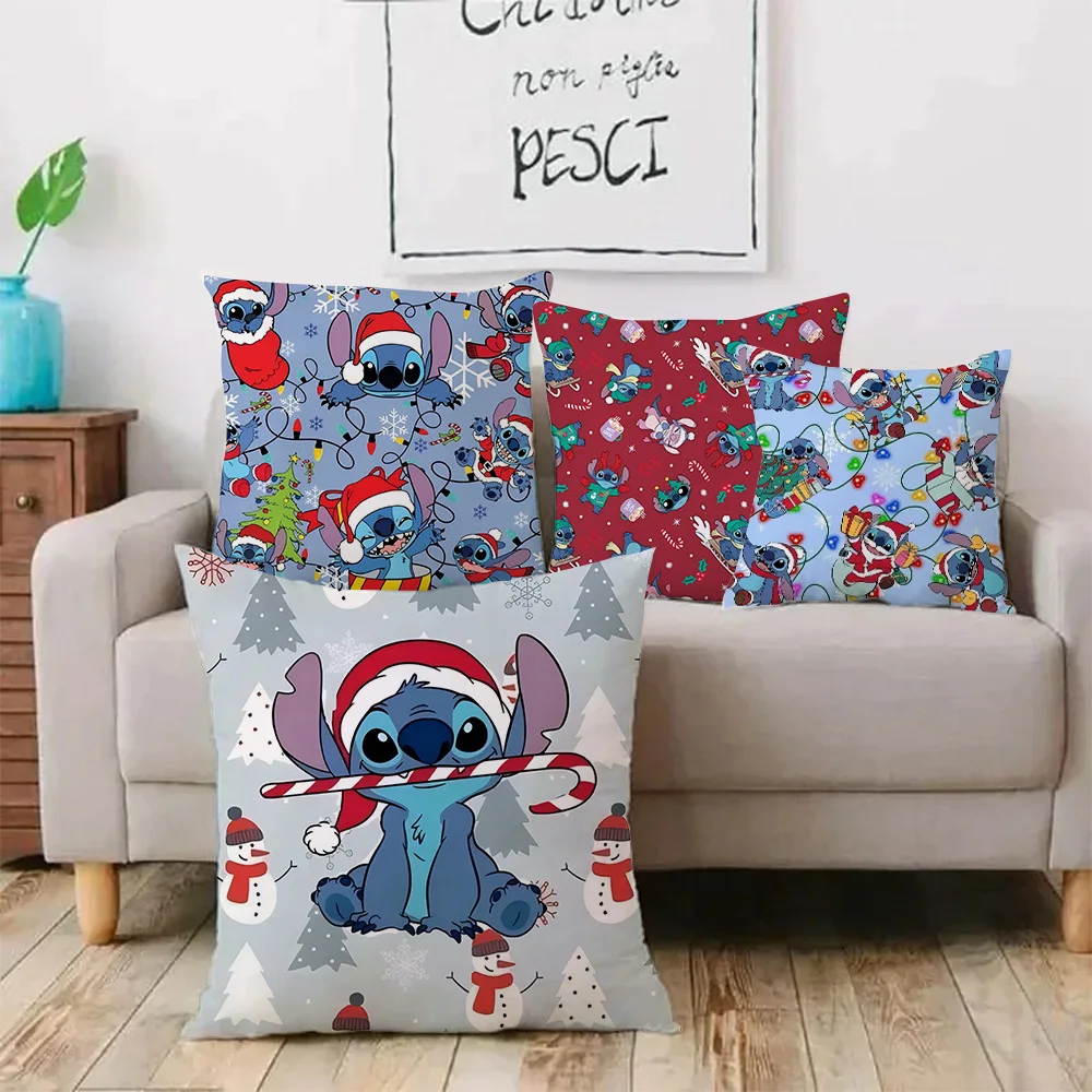 Hot Christmas Disneies Stitch Pillow Covers Cartoon Sofa Decorative Home Double-sided Printing Short Plush Cute Cushion Cover
