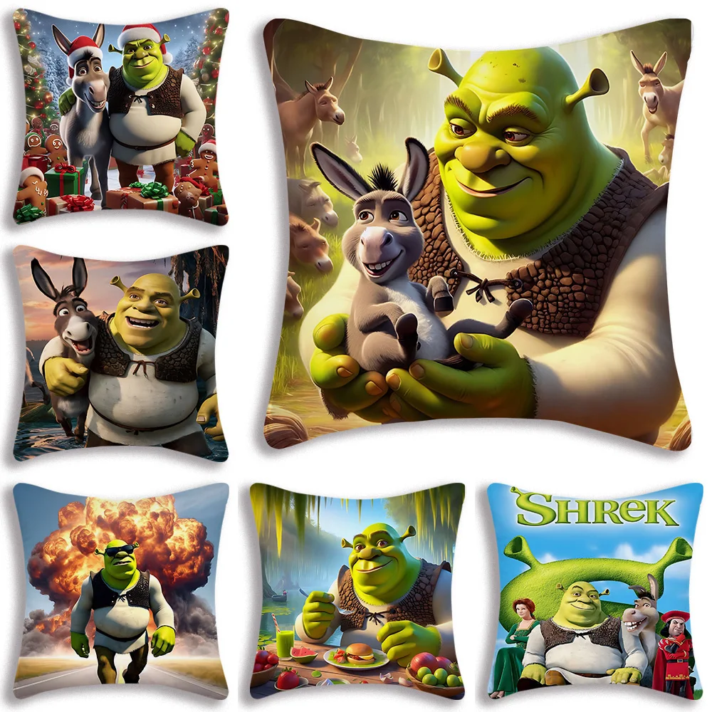 Fantasy movie funny Shrek Pillow Covers Cartoon Sofa Decorative Home Double-sided Printing Short Plush Cute Cushion Cover