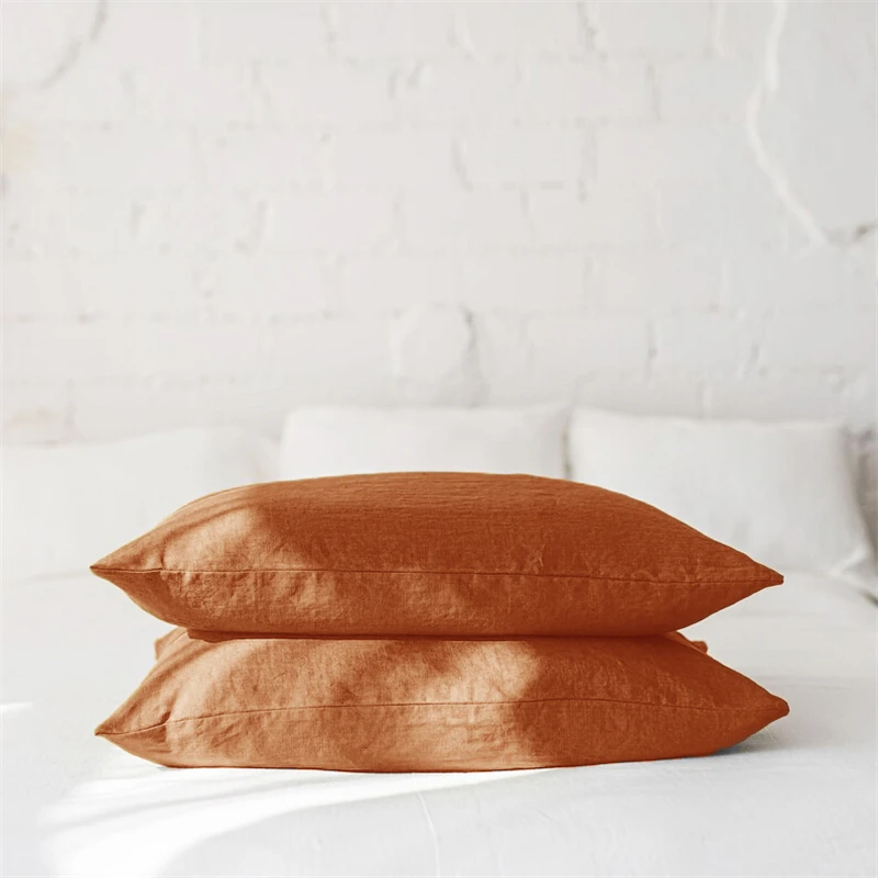 2PCS 100% Pure Linen Soft Pillowcase Summer Cool Bed Throw Caramel Pillow Cover Soft Breathable Home Decorative