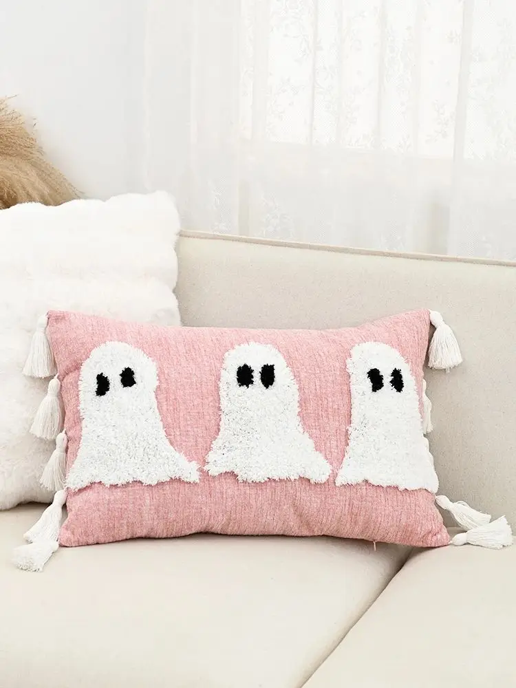 BUYNOW Halloween Pink Cute Ghost Pillowcase Tufted Embroidery Cushion Case Cozy Bedroom Accent Pillowcase Modern Home Decor  Read more