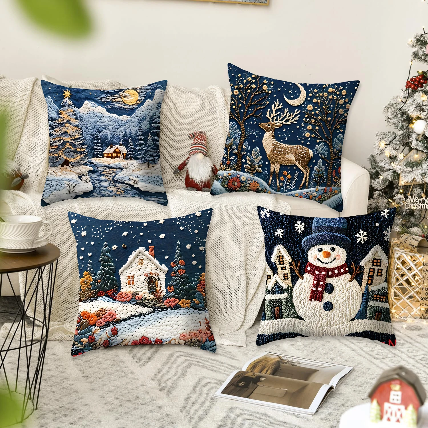 1pcs 2D Christmas Pillow Covers Xmas Party Decor Imitation embroidery Xmas Holiday snow scenery Pillow Cover New Year Gift 2026