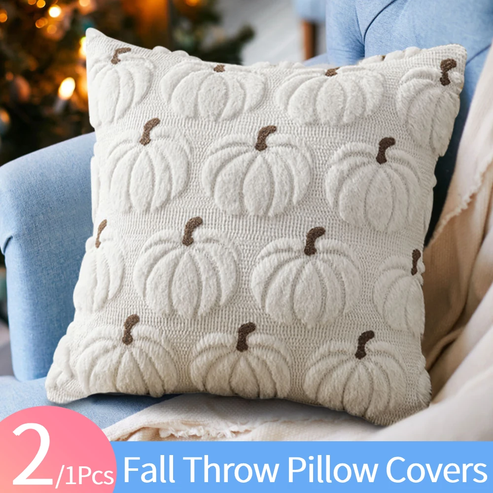 1/2Pcs Fall Throw Pillow Covers Halloween Pumpkin Embroidery Soft Faux Fur Pillow Covers Fluffy Plush Accent Pillowcases Gifts