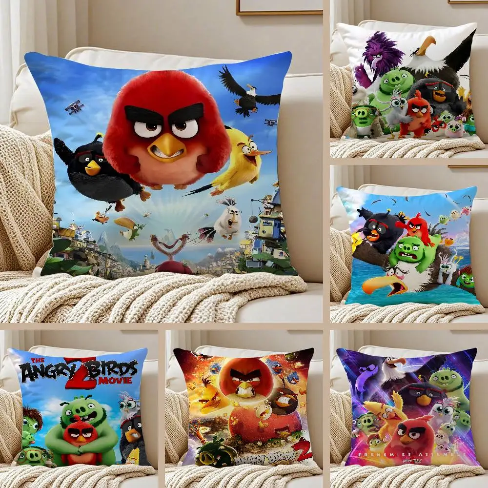 Popular Cartoon Crazy-A-Angry Birds-Game Anti-dustmite Pillowcase Invisible Zipper Silky Short Plush Sofa Cushion Cover