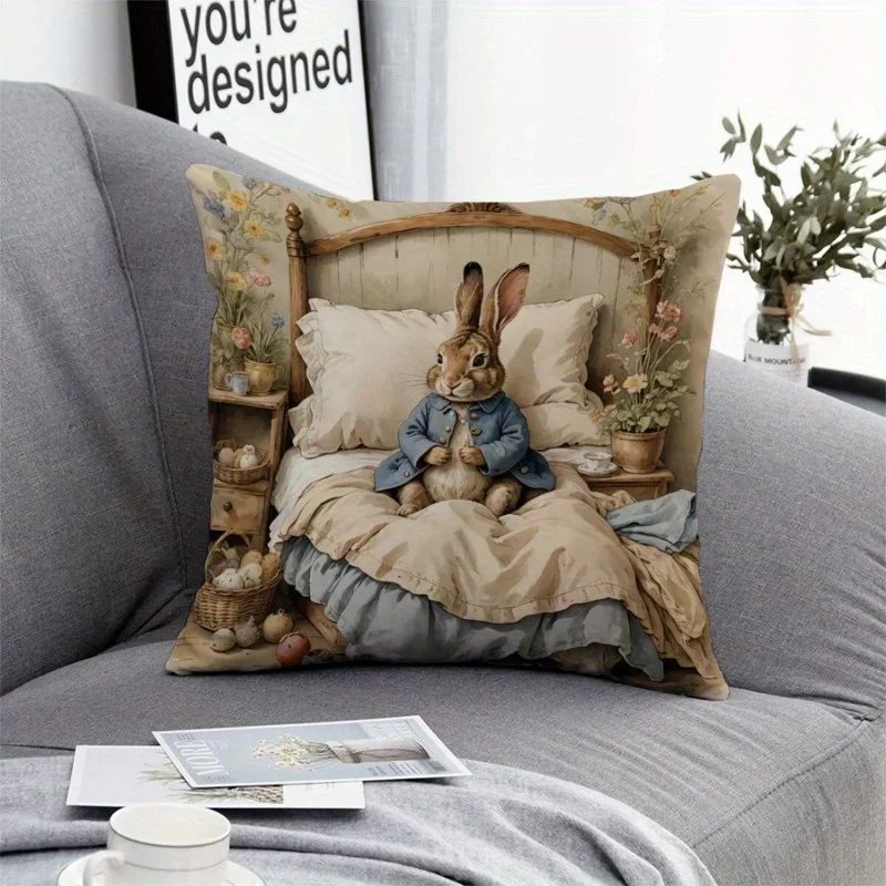 Easter Spring and Summer Retro Cartoon Cute Rabbit Singlesided Printed Pillowcase Gift for Friends Holiday Decoration