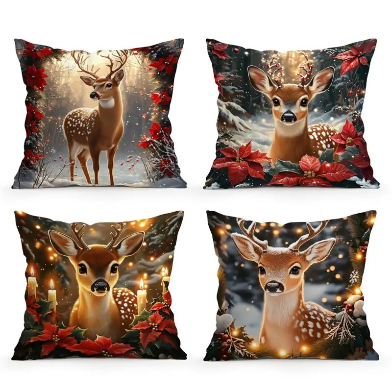 Christmas Reindeer Decorative Pillowcase 18 X 18 Inch Pillow Covers Throw Pillows Cushion Cases For Home Car Sofa 1pcs/4pcs  Read more