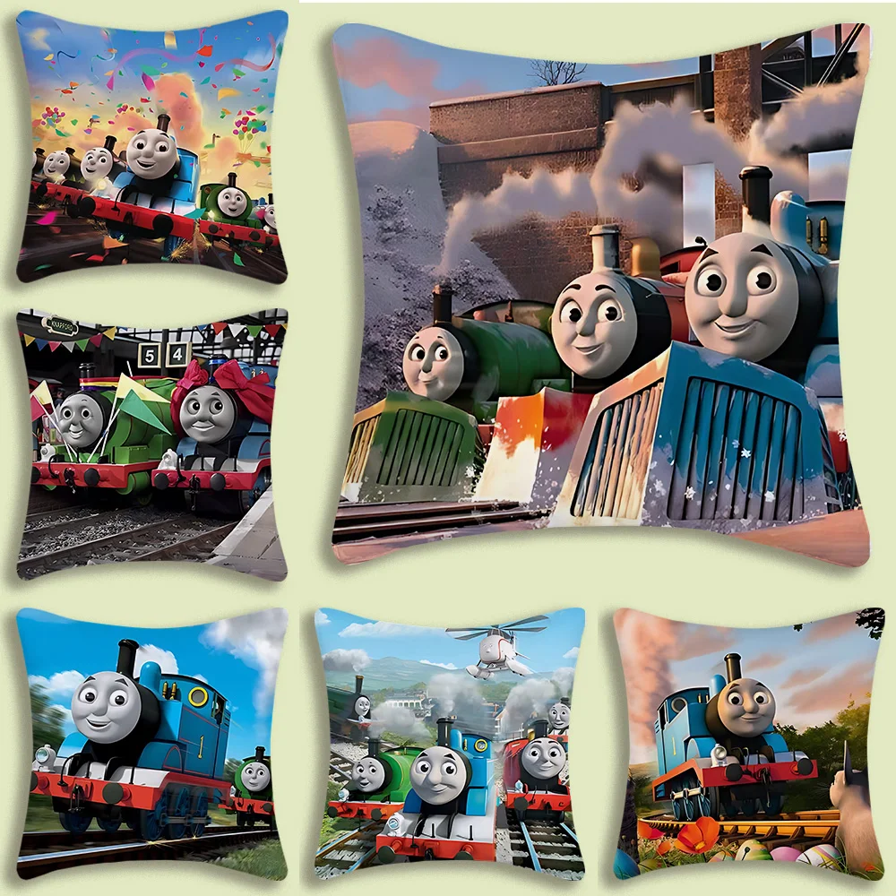 Thomas The Train Square Pillow Covers Cartoon Sofa Decorative Home Double-sided Printing Short Plush Cute Cushion Cover